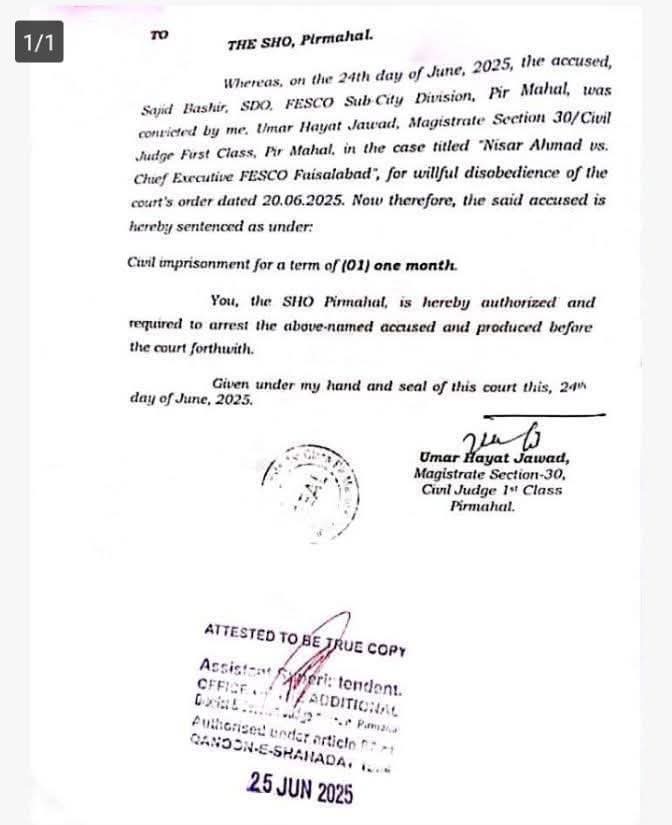 میٹر مالک مکان کی ملکیت ہوتا ہے پیر محل بجلی کا میٹر اتارنے پر ایس ڈی او کو ایک ماہ قید کی سزا سنا دی گئ
