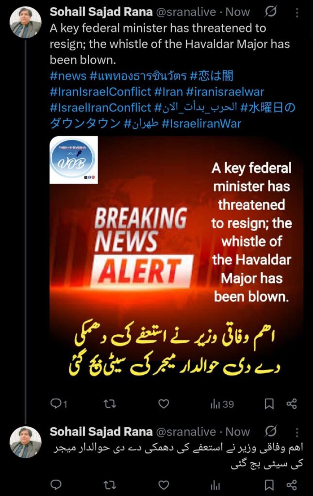 پاکستان ایران بارڈر تمام سرگرمیوں کے لئے کھول دیا گیا نیب نے 40 ارب روپے کوہستان کرپشن سکینڈل میں پی ٹی آئی کے مرکزی رہنما اعظم سواتی کو طلب کر لیا۔ ٹرمپ فیلڈ مارشل ملاقات 3 اھم مامعلات طے۔ افواج پاکستان میں بڑے پیمانے پر تبدیلیاں پروموشن۔ وائیٹ ھاوس میں بڑی بیٹھک۔ روس اور عرب امارات میں رابطہ ایران ختم شد۔جولائی اھم مھینہ ثابت ہو گا بڑوں کی چھٹی اھم ترین ھو گی۔ فیلڈ مارشل جنرل عاصم منیر سے ملاقات میرے لیئے اعزاز ہے امریکی صدر ڈونلڈ ٹرمپ ۔بادبان ٹی وی رپورٹ سھیل رانا