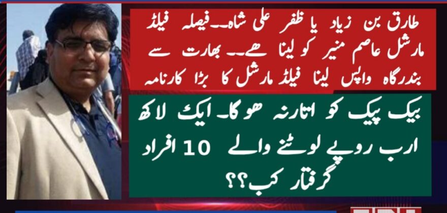 طارق بن زیاد یا ظفر علی شاہ۔۔فیصلہ فیلڈ مارشل عاصم منیر کو لینا ھے۔۔ بھارت سے بندرگاہ واپس لینا فیلڈ مارشل کا بڑا کارنامہ۔۔ Back pack کو اتارنہ ھو گا۔ ایک لاکھ ارب روپے لوٹنے والے 10 افراد گرفتار کب؟؟