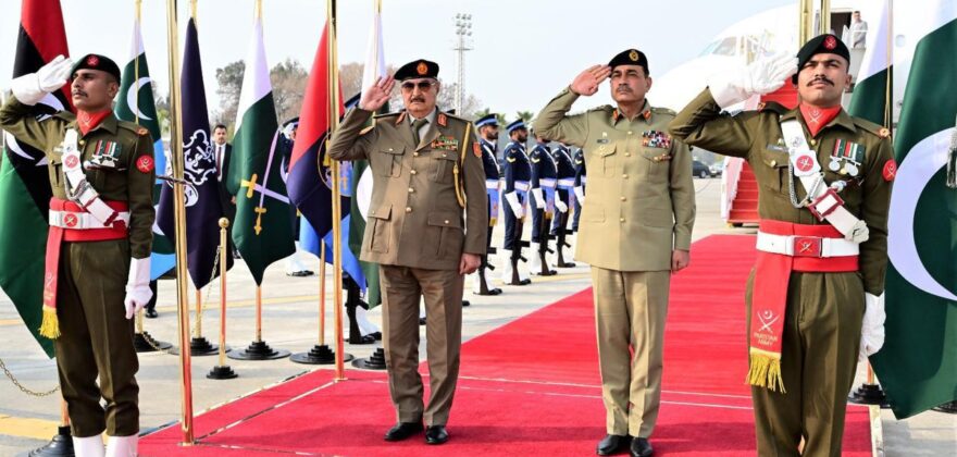 فیلڈ مارشل سید عاصم منیر سے لیبین عرب افواج کے سربراہ خلیفہ حفترکی ملاقاتباہمی دلچسپی بالخصوص متعلقہ خطوں کی سکیورٹی صورتحال اورپیشہ ورانہ تعاون پر تبادلہ خیال ، دونوں افواج کے درمیان مسلسل روابط اور تعاون کی اہمیت پر زور