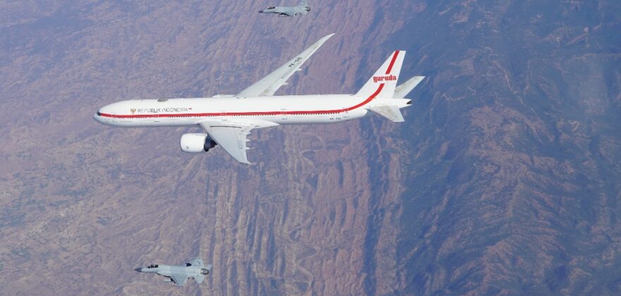 پاک فضائیہ کے لڑاکا طیاروں کی جانب سے انڈونیشیا کے صدر پرا بووو سوبیانتو کا پرتپاک فضائی استقبال08 دسمبر 2025: پاک فضائیہ کے جے ایف-17 تھنڈر کے چھ طیاروں پر مشتمل دستے نے انڈونیشیا کے صدر پرا بووو سوبیانتو کے طیارے کو پاکستانی فضائی حدود میں داخل ہونے پر روایتی فضائی مشایعت فراہم کی جو کہ دونوں ممالک کے درمیان شاندار مہمان نوازی اور برادرانہ تعلقات کی علامت ہے.