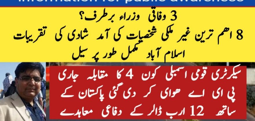 3 وفاقی وزراء برطرف؟ 8 اھم ترین غیر ملکی شخصیات کی آمد شادی کی تقریبات اسلام آباد مکمل طور پر سیل 8 اھم ترین غیر ملکی شخصیات کی آمد شادی کی تقریباتعرب امارات اور سعودی عرب میں پھڈا۔۔پاکستان کے ساتھ 12 ارب ڈالر کے دفاعی معاہدے سہیل رانا لائیو میں