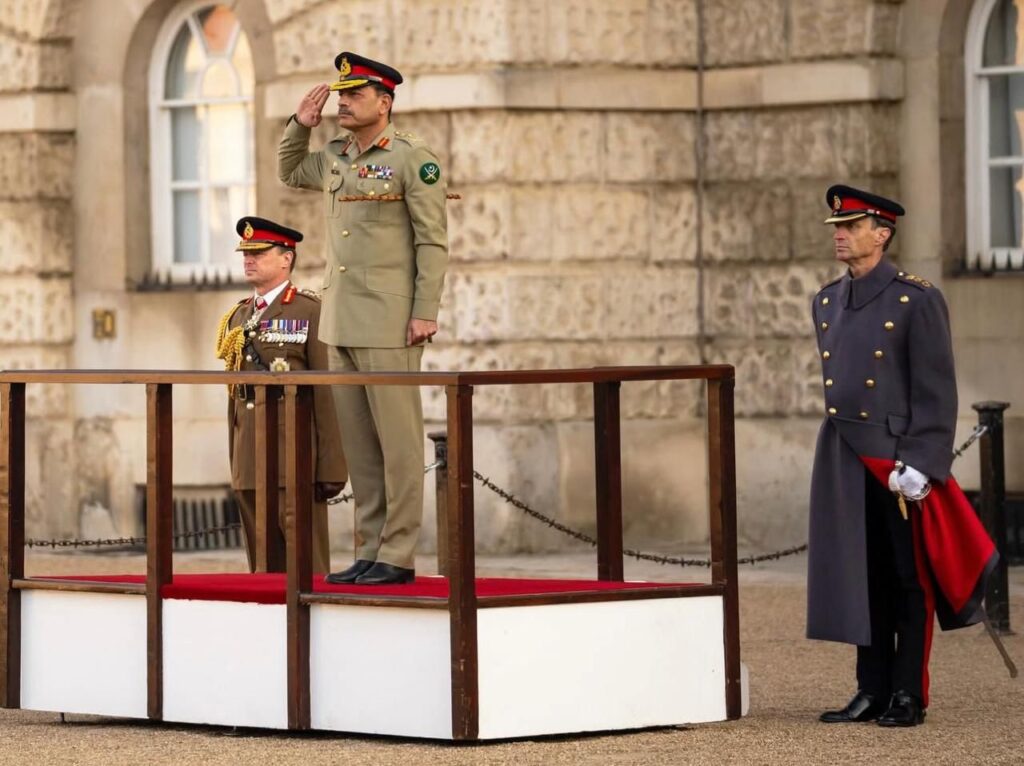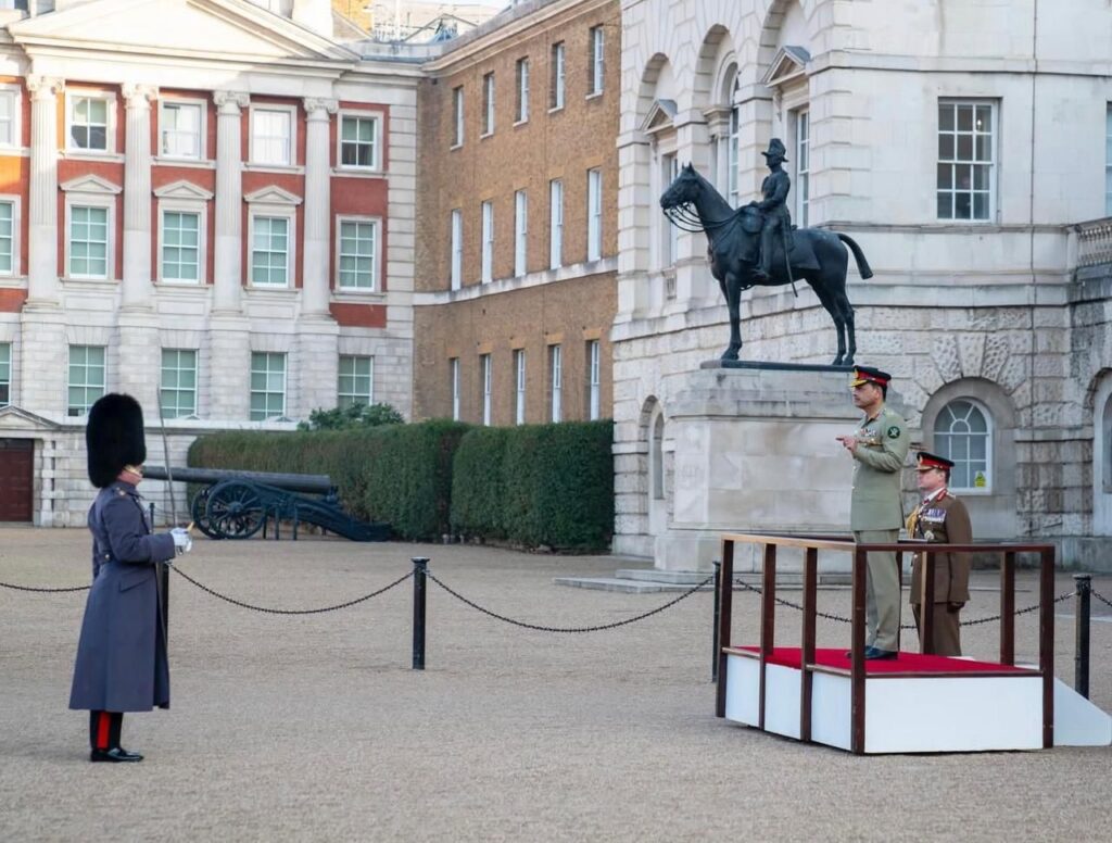 برطانیہ پہنچنے پر ہارس گارڈز پریڈ میں جنرل سید عاصم منیر کو ایک پروقار گارڈ آف آنر پیش کیا گیا۔