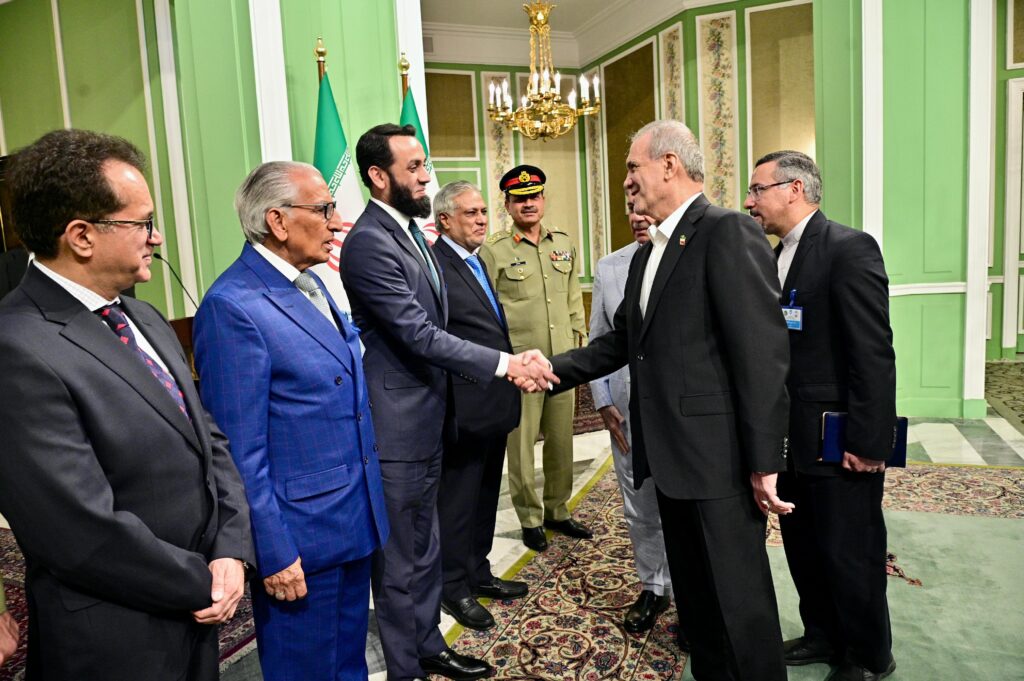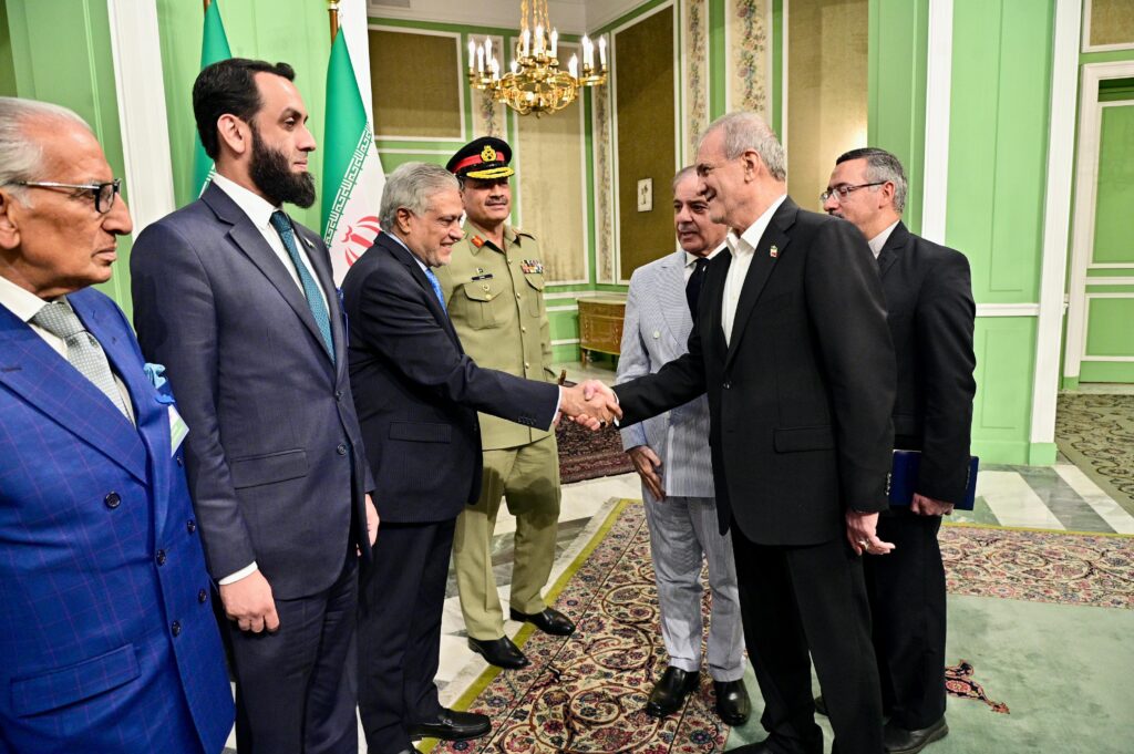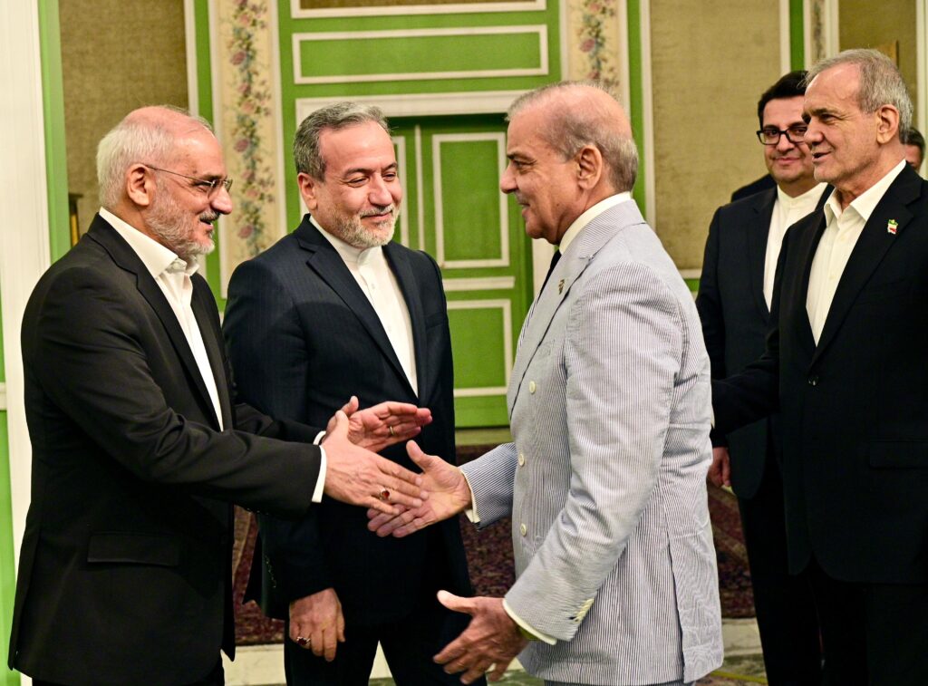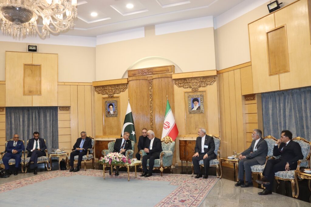 نائب وزیراعظم و وزیر خارجہ محمد اسحاق ڈار، چیف آف آرمی سٹاف فیلڈ مارشل سید عاصم منیر، وفاقی وزیر داخلہ سید محسن رضا نقوی، وفاقی وزیر اطلاعات عطاء اللہ تارڑ اور معاون خصوصی سید طارق فاطمی دورہ ایران میں وزیر اعظم کے ساتھ وفد میں شامل ہیں۔اس موقع پر دونوں ملکوں کے قومی ترانے بجائے گئے۔ وزیراعظم محمد شہباز شریف کی ایرانی صدر ڈاکٹر مسعود پز شکیان سے ملاقات کے دوران دونوں ملکوں کے مابین دوطرفہ تعاون کے فروغ پر تبادلہ خیال کیا جائے گا۔