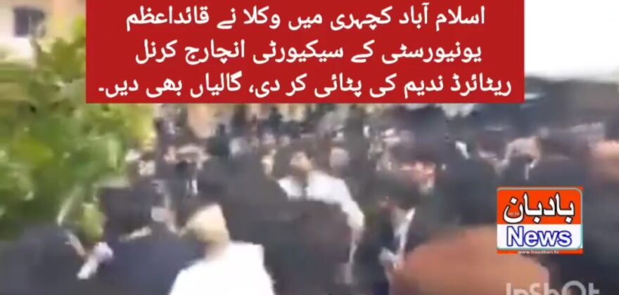 اسلام آباد کچہری میں وکلا نے قائداعظم یونیورسٹی کے سیکیورٹی انچارج کرنل ریٹائرڈ ندیم کی پٹائی کر دی، گالیاں بھی دیں۔۔!!