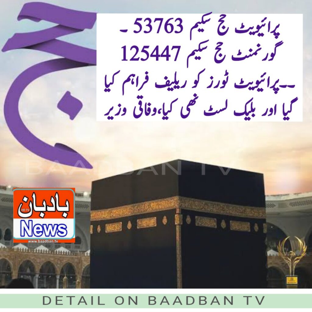 پرائیویٹ حج سكيم 53763۔ گورنمنٹ حج سكيم125447۔۔پرائیویٹ ٹورز کو ریلیف فراہم کیا گیا اور بلیک لسٹ نھی کیا،وفاقی وزیر۔ تفصیلات بادبان ٹی وی پر