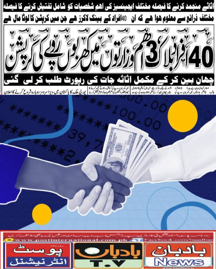 14 وزارتوں میں کھربوں روپے کی کرپشن پر اھم ادارے کی رپورٹ نے ھلچل مچا دی۔لیکچیز بند نہ کرنا اور بوجھ عوام پر ڈال دیا چینی پٹرول اور بجلی چوری جیسی لیکچیز 8 اھم ترین وزراء کھربوں روپے کی کرپشن میں ملوث ہونے کے باوجود دیدہ دلیری سے ملک مخالف سرگرمیوں میں ملوث۔ ۔افغان طالبان اور بھارت کا گٹھ جوڑ بے نقاب۔سینٹ کی نشستوں پر نوٹوں کی بوریوں کے منہ کھل گئے۔فیلڈ مارشل صدر مملکت نھی بن رھے پیکا ایکٹ ان ایکشن۔مولانا فضل الرھمان کی سینٹ اور مخصوص نشستوں کے لئے ن لیگ سے مک مکا۔رانا سناالہ امیر مقام کی فضل الرھمان سے ملاقات مک مکا۔بلوچستان کے علاقے لورالائی میں فتنہ الہندوستان کے دہشتگردوں کی طرف سے 10 پنجابیوں کو شہید کردیا گیا، تعلق ڈیرہ غازی خان سے تھا۔ تفصیلات بادبان ٹی وی پر