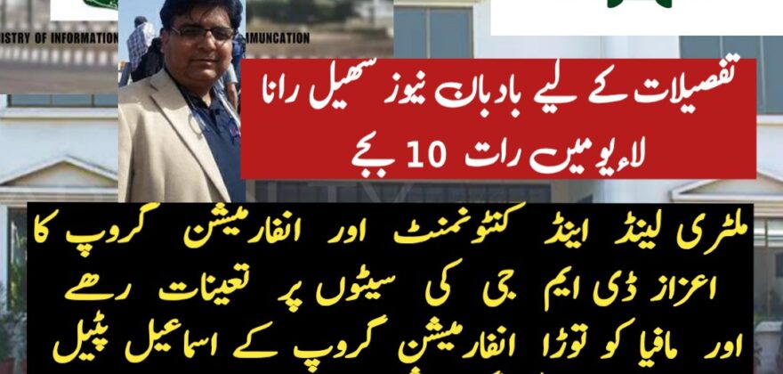 ملٹری لینڈ اینڈ کنٹونمنٹ اور انفارمیشن گروپ کا اعزاز ڈی ایم جی کی سیٹوں پر تعینات رھے اور مافیا کو توڑا انفارمیشن گروپ کے اسماعیل پٹیل انور محمود سلیم گل شیخ خواجہ اعجاز اسی طرح ملٹری لینڈ کے نعیم جان راجہ نادر خان اور رانا منظور احمد نے مافیا کو توڑا تفصیلات کے لیے بادبان نیوز سھیل رانا لاءیو میں رات 10 بجے