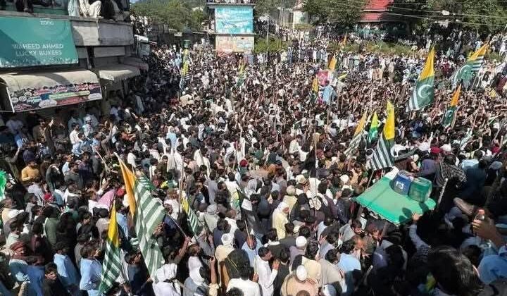 مظفرآباد میں مسلم کانفرنس کی امن ریلی پر جائنٹ عوامی ایکشن کمیٹی کے مسلح شر پسندوں کا حملہ ۔ ذرائع عوامی ایکشن کمیٹی کے مُسلح شر پسندوں نے اپنے ناکام اختجاج کا غصہ عوام پر نکالنا شروع کر دیا عوامی ایکشن کمیٹی کے مسلح شر پسندوں کی فائرنگ سے گیارہ شہری زخمی۔ ذرائع بٹل میں بھی عوامی ایکشن کمیٹی کے مُسلح شر پسندوں نے ایمبولنس کا راستہ روک لیا جسکی وجہ سے بزرگ شہری محمد صادق وفات پا گئے عوامی ایکشن کمیٹی کے مُسلح شر پسند غلیلوں اور ہتھیاروں سے پولیس پر حملے بھی کر رہے ہیں، جو صاف ظاہر کرتا ہے کے عوامی ایکشن کمیٹی کے عزائم شروع سے شر پسندانہ تھے علاقے کے عوام نے ایمبولنس روکے جانے پر غصے میں آ کر عوامی ایکشن کمیٹی کی کھڑی روکاوٹیں اٹھا کر پھینک دی عوامی ایکشن کمیٹی کی ریلی میں اشتہاریوں کی موجودگی کا انکشاف ۔ ذرائععوامی ایکشن کمیٹی کی ہلڑ بازی اور درندگی کے خلاف عوام سراپا احتجاجقانون نافذ کرنے والے اداروں نے شر پسندوں اور لیڈران کے خلاف قانونی کاروائی شروع کر دی
