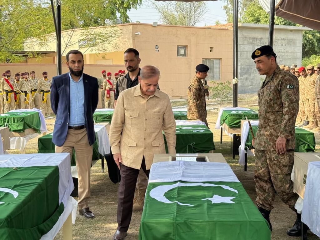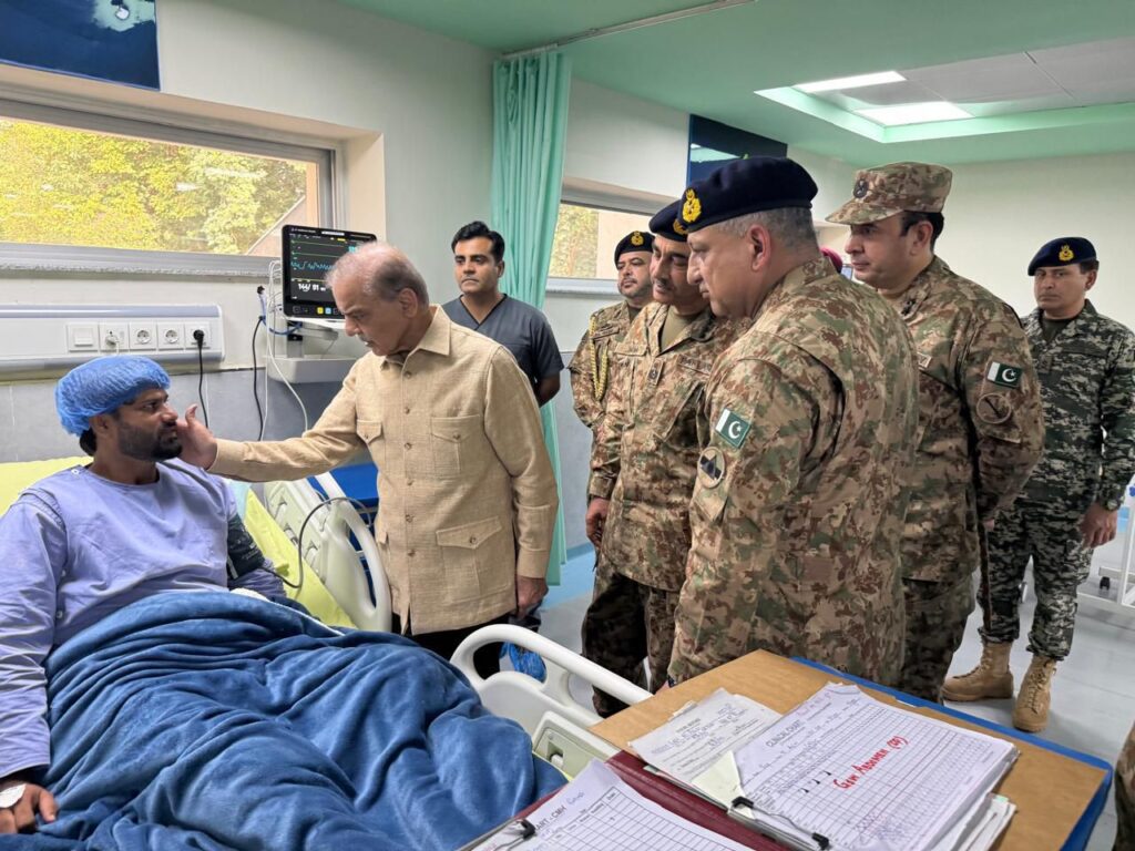 وزیر اعظموزیر اعظم اور فیلڈ مارشل نے بنوں CMH میں زخمیوں کی عیادت بھی کی پشاور کے کور کمامڈر نے علاقے کی سیکورٹی صورتحال پر تفصیلاً بریف کیا وزیر اعظم کا چیف آف آرمی اسٹاف نے بنوں کنٹونمنٹ میں استقبال کیا