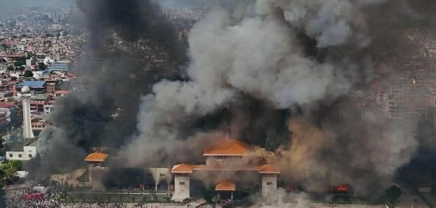 نیپال میں وزیراعظم کی رہائش گاہ کا منظر ۔۔۔وزیراعظم نے بھی استعفیٰ دیدیا ۔۔۔۔نیپال میں سوموار سے نوجوانوں نے احتجاج کی کال دے رکھی تھی جس میں طلبہ بھی شامل تھے اب تک احتجاج میں 19 افراد جاں بحق ہو چکے ہیں ۔ وزراء اور وزیراعظم نے استعفیٰ دے دیا ہے ۔۔۔نوجوانوں کے احتجاج کی وجہ کرپشن ، آزادی اظھار راۓ ، انتظامی معاملات اور الیکشن میں کئے گئے وعدے پورے نہ کرنا ہے.