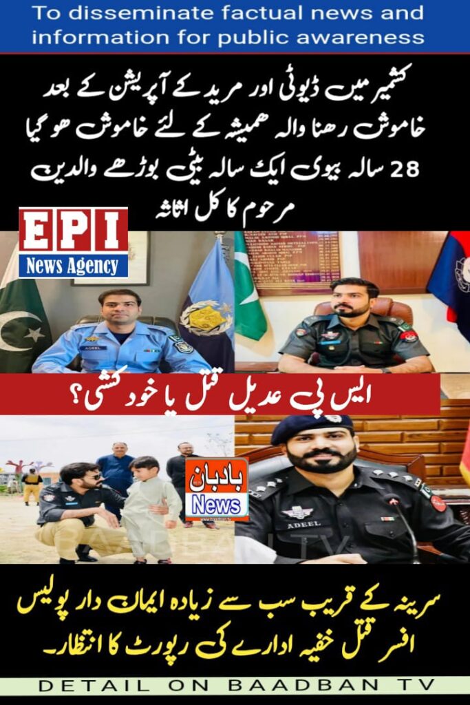ایس پی عدیل قتل یا خودکشی؟کشمیر میں ڈیوٹی اور مرید کے آپریشن کے بعد خاموش رھنا والہ ھمیشہ کے لئے خاموش ھو گیا 28 سالہ بیوی ایک سالہ بیٹی بوڑھے والدین مرحوم کا کل اثاثہ۔سرینہ کے قریب سب سے زیادہ ایمان دار پولیس افسر قتل خفیہ ادارے کی رپورٹ کا انتظار۔۔عدالتی حکم ہونے کے باوجود ہمیں اپنے لیڈر عمران خان سے ملاقات نہیں کرنے دی گئی۔ عدالتی احکامات نہیں مانے جا رہے تو یہ ہماری کمزوری نہیں بلکہ عدلیہ کی بے بسی ہے۔ وزیر اعلیٰ خیبرپختونخواہ سہیل آفریدی ۔۔ تفصیلات بادبان ٹی وی پر