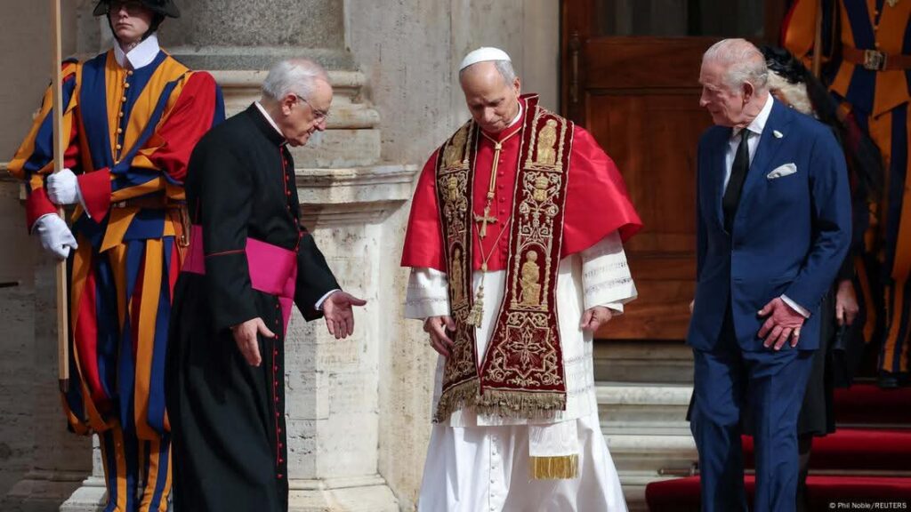پوپ اور شاہ برطانیہ نے 500 سال میں پہلی بار اکٹھے دعا کیبرطانیہ کے بادشاہ چارلس اور کیتھولک مسیحیوں کے رہنما پوپ لیو نے جمعرات کے روز ویٹیکن میں اکٹھے دعا کی۔ یہ پہلا موقع تھا جب کسی برطانوی بادشاہ اور کیتھولک پوپ نے سن 1534 کے بعد مشترکہ عبادت میں حصہ لیا۔جمعرات کے روز ویٹیکن کے سسٹین چرچ میں مائیکل اینجلو کے بنائے گئے شہ پارے کے سامنے، جس میں عیسیٰ مسیح کے آخری فیصلے کی منظرکشی کی گئی ہے، لاطینی نغمے اور انگریزی دعائیں گونج رہی تھیں۔