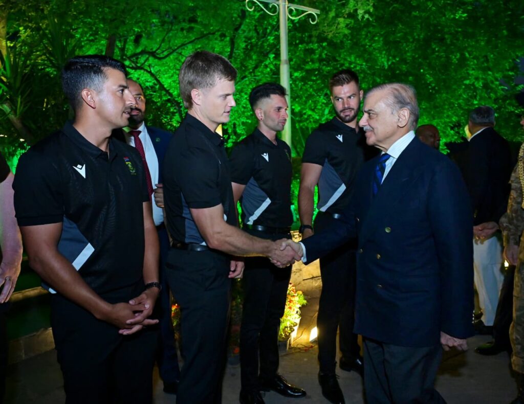 : وزیراعظم وزیراعظم نے بین الاقوامی کھیلوں کے فروغ اور کھیلوں کے بڑے ایونٹس کی میزبانی کے لیے سازگار ماحول کو برقرار رکھنے کے لیے پاکستان کے عزم کو اجاگر کیا۔اس موقع پر گفتگو کرتے ہوئے جنوبی افریقی ٹیم کی انتظامیہ اور کھلاڑیوں نے پاکستان کی حکومت اور عوام کی گرمجوشی پر شکریہ ادا کیا۔ انہوں نے بتایا کیا کہ سیریز ایک یادگار تجربہ رہا،اور وہ پاکستانی شائقین کی بھرپور حمایت اور داد سے لطف اندوز ہوئے