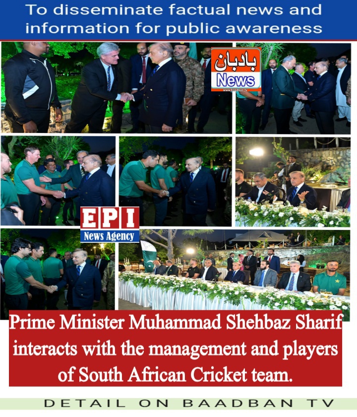 وزیراعظم محمد شہباز شریف کا جنوبی افریقہ کی مہمان کرکٹ ٹیم اور پاکستان کرکٹ ٹیم کے اعزاز میں عشائیہ_*وزیراعظم کی جنوبی افریقہ اور پاکستان کرکٹ ٹیم کے کھلاڑیوں ملاقات اور سے گفتگو جنوبی افریقہ کی کرکٹ ٹیم کو پاکستان میں خوش آمدید کہتے ہیں : وزیراعظم جنوبی افریقہ کے ساتھ مختلف سطحوں پر شاندار تعلقات ہیں اور کرکٹ بھی ان میں سے ایک ہے : وزیراعظم جاری کرکٹ سیریز پاکستان اور جنوبی افریقہ کے درمیان کھیلوں کے گہرے تعلقات اور باہمی احترام کی علامت ہے