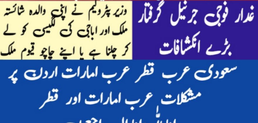 پاکستانیوں کے عرب امارات میں 200 ارب ڈالر 236 افراد کون سے سیاست دانوں میں ا سحاق ڈار پھلے نمبر پر فوج میں جنرل باجوہ اور میڈیا گروپ کا میر شکیل۔غدار فوجی جرنیل گرفتار بڑے انکشافات۔۔ وزیر پٹرولیم نے اپنی والدہ شائستہ ملک اور اباجی کی لگیسی کو لے کر چلنا ہے یا اپنے چاچو قیوم ملک۔۔اسرائیل ایک اور ایڈوانچیر کی طرف گامزن بیت المقدس پر نعوذ باللہ حملہ کر کے ایران پر ڈالنے کی کوشش کرے گا۔۔ سعودی عرب قطر عرب امارات اردن پر مشکلات عرب امارات اور قطر انا للہ و انا الیہ راجعون۔۔ تفصیلات سہیل رانا لائیو میں