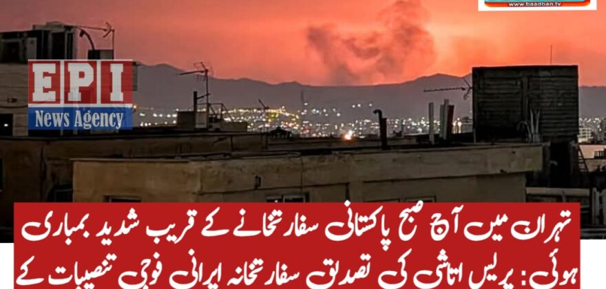 ◀️تہران میں آج صبح پاکستانی سفارتخانے کے قریب شدید بمباری ہوئی: پریس اتاشی کی تصدیق سفارتخانہ ایرانی فوجی تنصیبات کے قریب واقع ہے، جن میں ایک فوجی تربیتی مرکز شامل پریس قونصلر کی بادبان نیوز سے تصدیق
