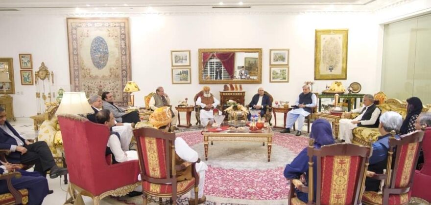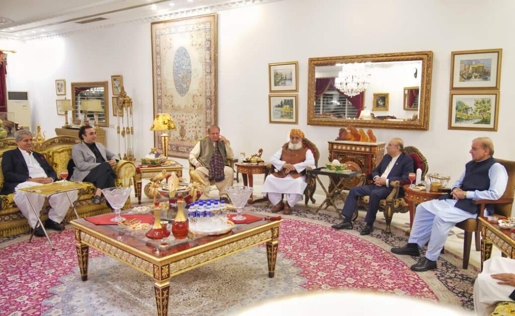 سابق وزیراعظم نوازشریف کی رہائشگاہ پر اہم مشارتی اجلاس اجلاس میں سربراہ جےیوآئی مولانا فضل الرحمان، صدر مملکت آصف علی زرداری، وزیراعظم شہبازشریف شریک ملاقات میں مولانا اسعد محمود، ڈپٹی وزیراعظم اسحاق ڈار، وزیرداخلہ محسن نقوی، وزیرقانون اعظم نذیر تاڑڑ وزیراعلی پنجاب، گورنر پنجاب شریک