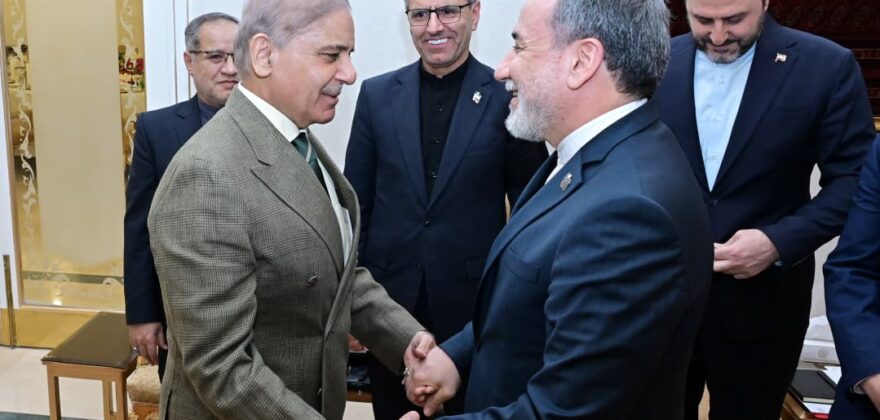 وزیرِ اعظم محمد شہباز شریف سے ایرانی وزیرِ خارجہ عباس عراقچی اور ایرانی وفد کی ملاقات*ایرانی وزیرِ خارجہ عباس عراقچی کی وزیرِ اعظم سے ملاقات کیلئے وزیرِ اعظم ہاؤس آمد، دونوں رہنماؤں کی ملاقات شروع.ملاقات میں نائب وزیرِ اعظم و وزیرِ خارجہ سینیٹر محمد اسحاق ڈار اور چیف آف آرمی اسٹاف و چیف آف ڈیفینس فورسز فیلڈ مارشل سید عاصم منیر بھی وزیرِ اعظم کے ہمراہ ملاقات میں شریک ہیں. ملاقات میں خطے کی صورتحال پر گفتگو ہوگی.